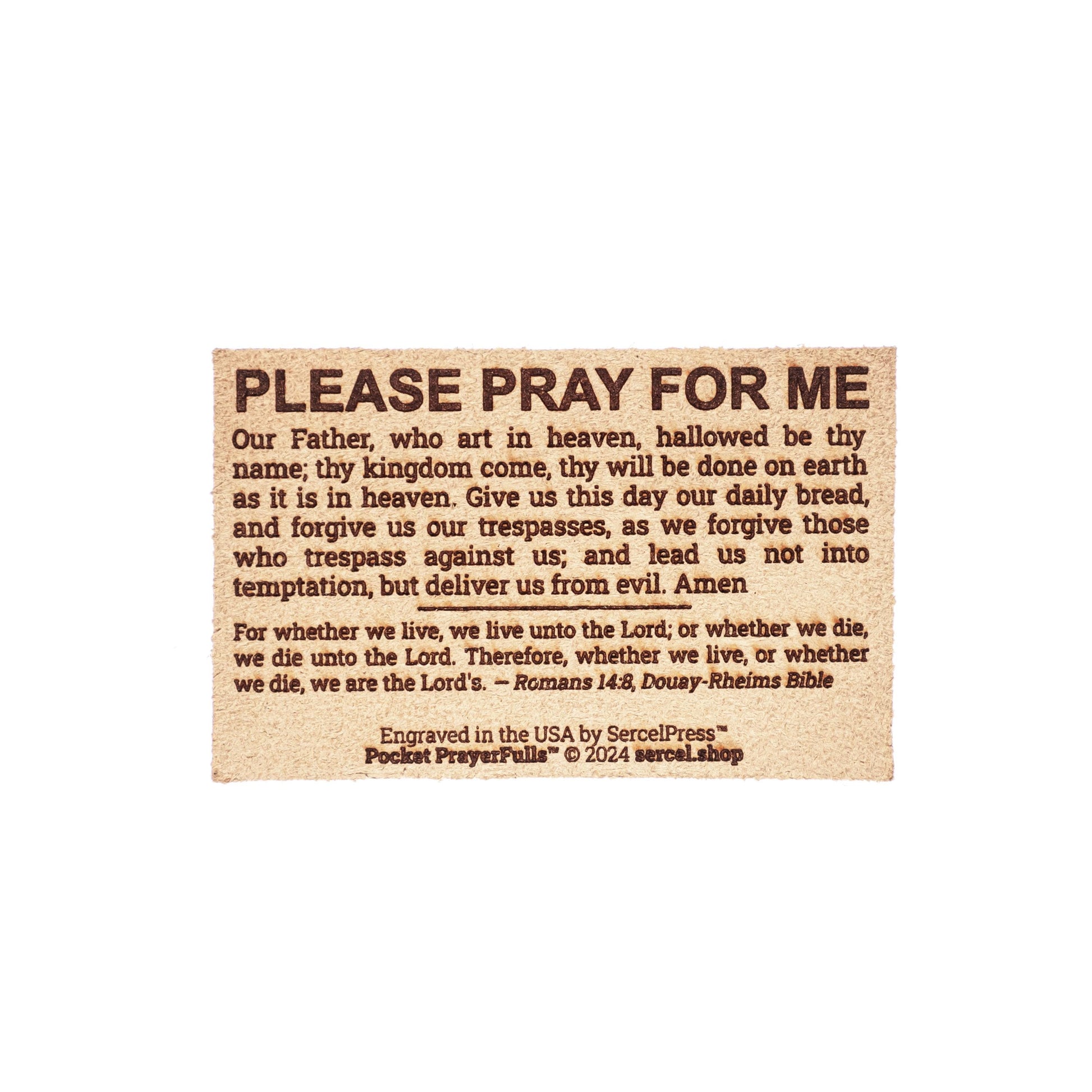 Laser-engraved on genuine leather and measuring approximately 3x2 inches-just slightly smaller than a credit card-this premium pocket card is built to endure tough conditions and stand the test of time. It's a rugged, elevated alternative to our plastic Pocket PrayerFulls™, which are already a major leap in durability over traditional paper holy cards.