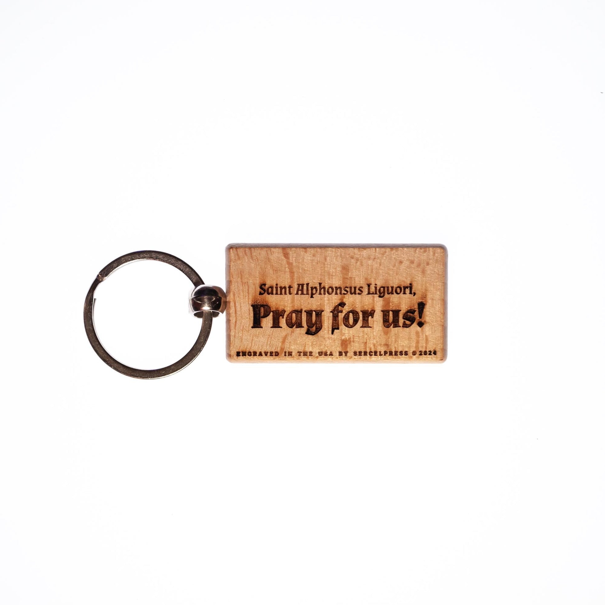 Saint Alphonsus Liguori, Solid Wood Keychain, Engraved in the USA, Catholic
